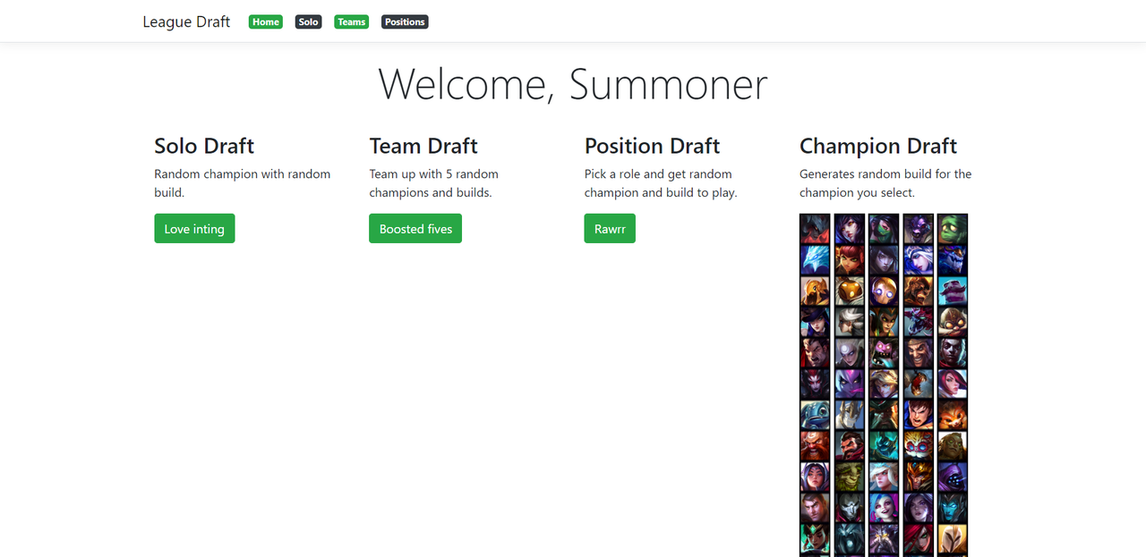 ASP .NET Core League of Legends random generator for champions, build sets, summoner spells and positions.