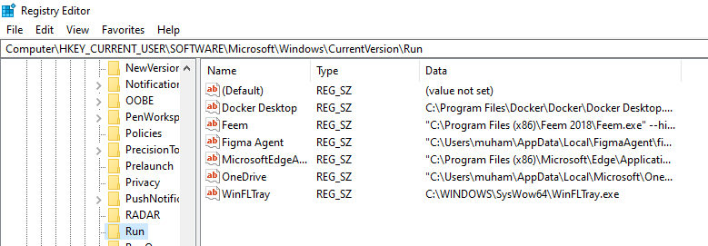 From here, open up HKEY_CURRENT_USER > SOFTWARE > Microsoft > Windows > CurrentVersion > Run.