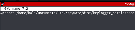 We can now see that our keylogger has been added to our cron table. Every time the computer is restarted, our keylogger will be executed.