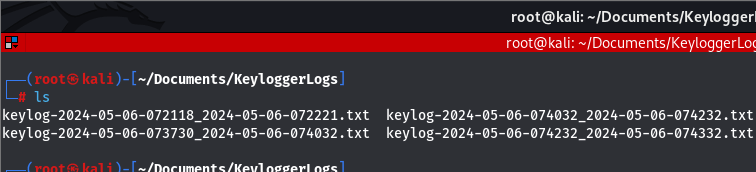 Finally, let's check our keylogger files from /root/Documents/Keyloggerlogs: