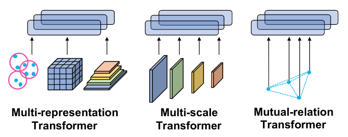 M3DeTR: Multi-representation, Multi-scale, Mutual-relation 3D Object Detection with Transformers