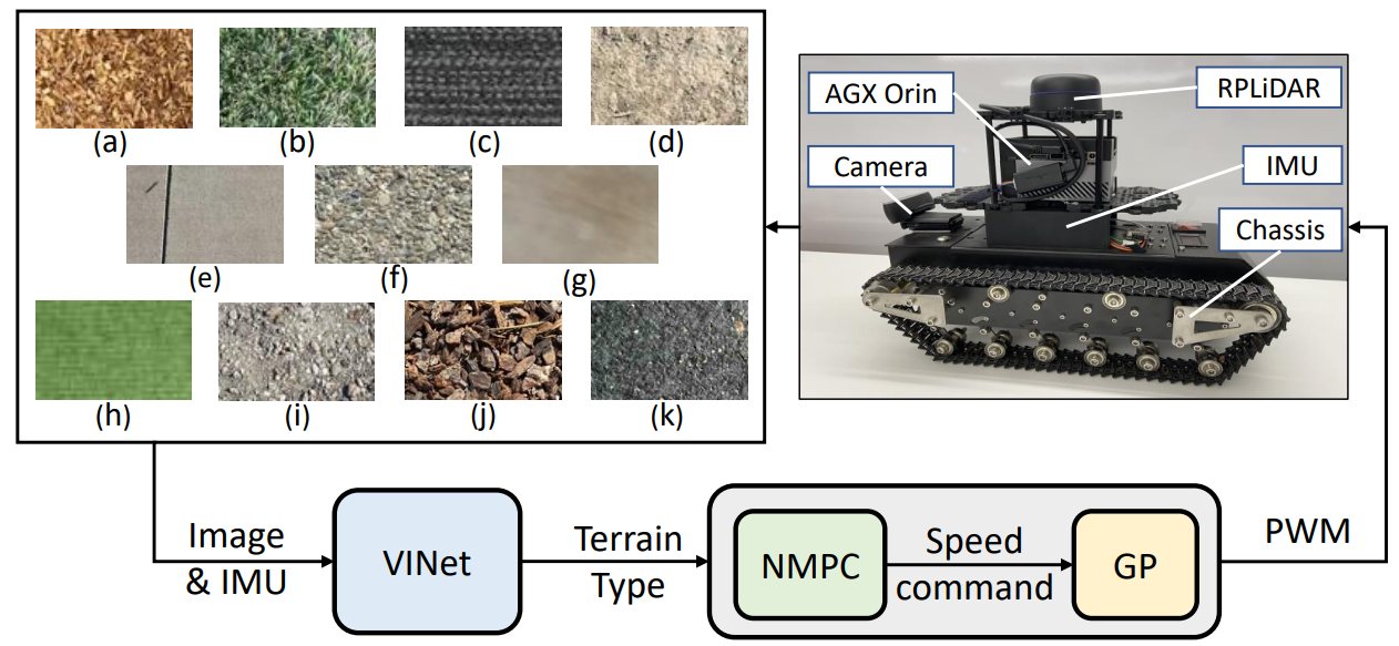 VINet: Visual and Inertial-based Terrain Classification and Adaptive Navigation over Unknown Terrain