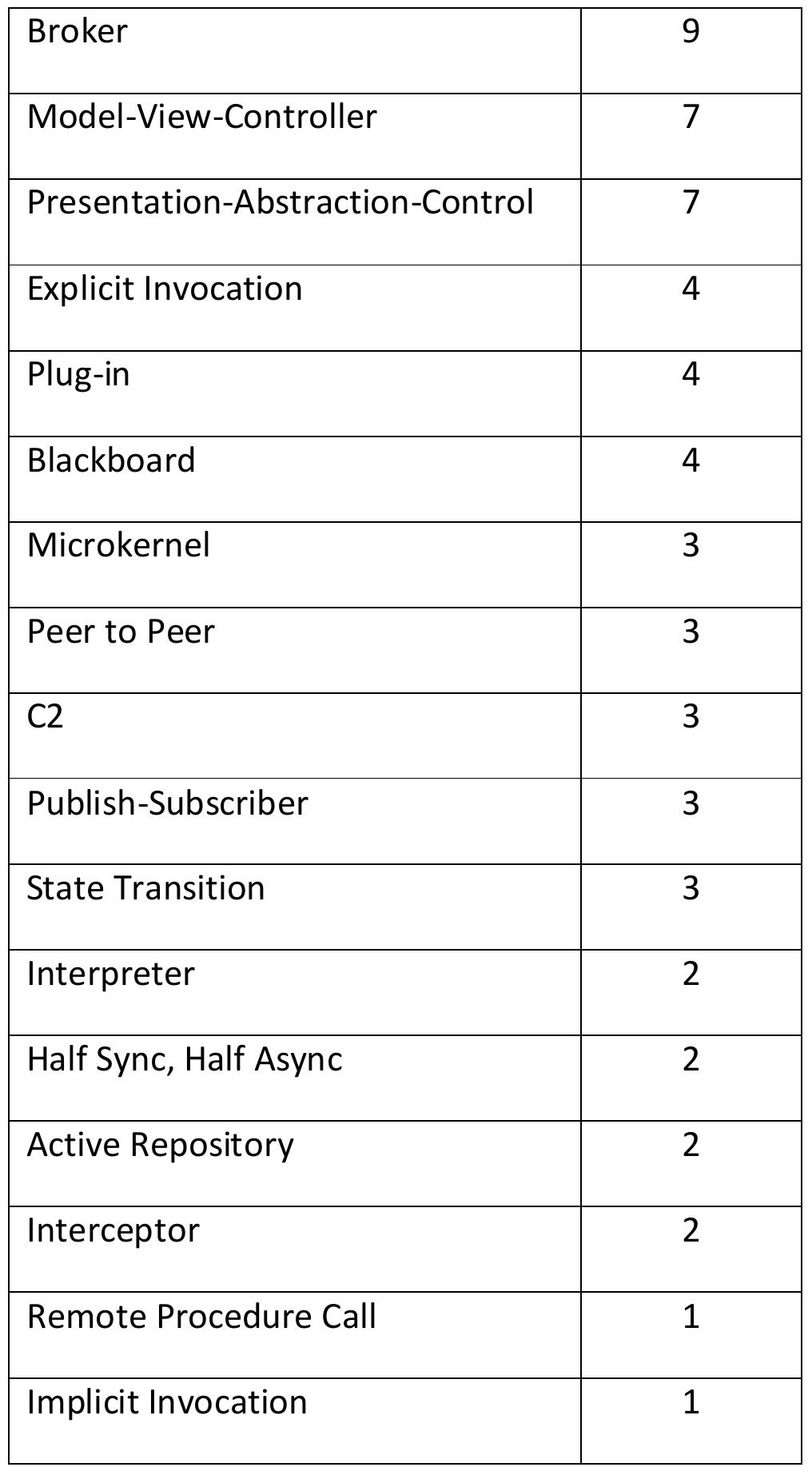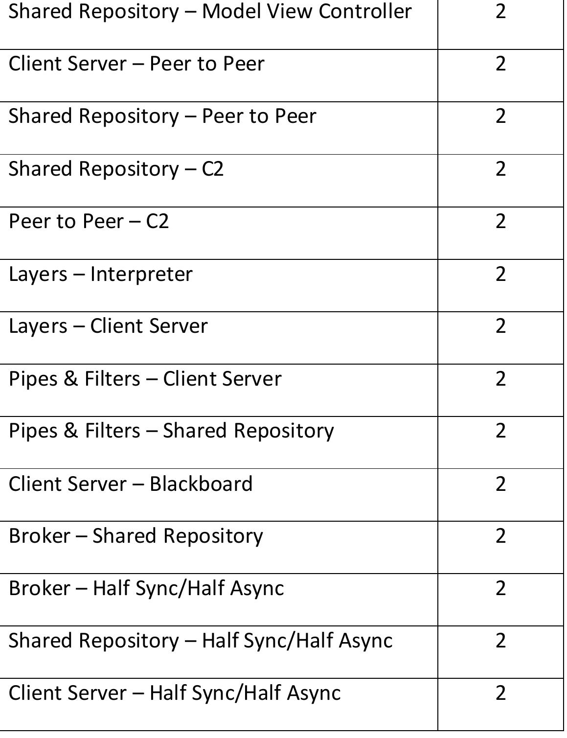![Table 2.3: Pattern Frequency for the patterns State Transition [121] and Half Sync, Half Async [112].](https://figures.academia-assets.com/120841515/table_005.jpg)